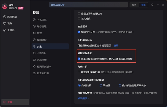 因此,向日葵的安全闭环体系以“被控端”为中心展开。向日葵16不仅搭载了多重安全防护,用户还可以自由选择是否允许他人远程访问本机。